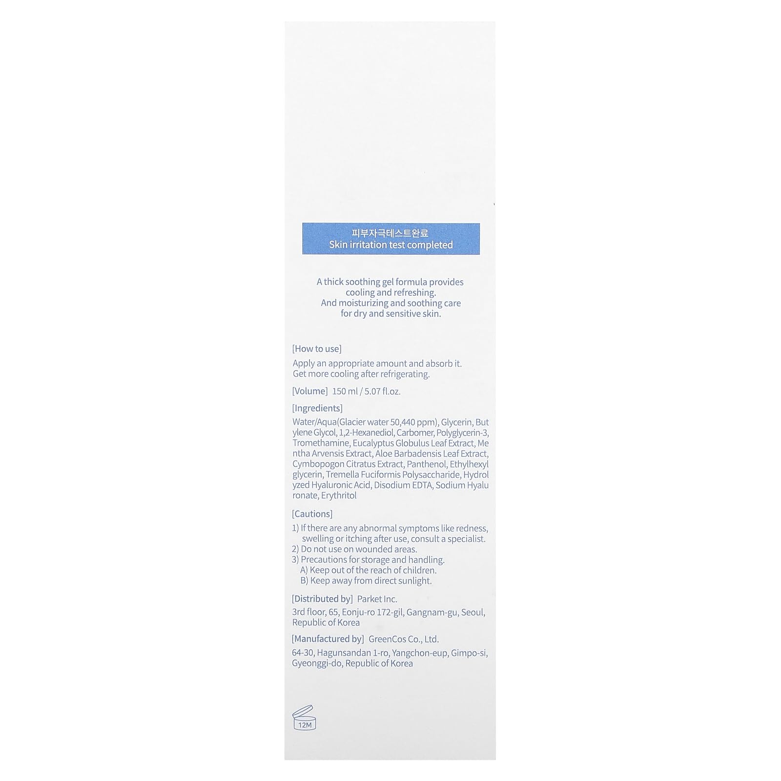- [HOW TO USE] ① Apply an appropriate amount and spread the gel to heated, irritated areas & leave on until fully absorbed. ② Store in refrigerator to enhance the cooling effect of the gel.
